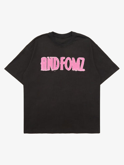Pink Letter Applique Street Rap T-shirt - 2145