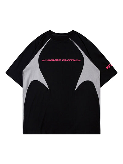 Retro Color-Blocked Deconstructed Stitching Racing T-shirt