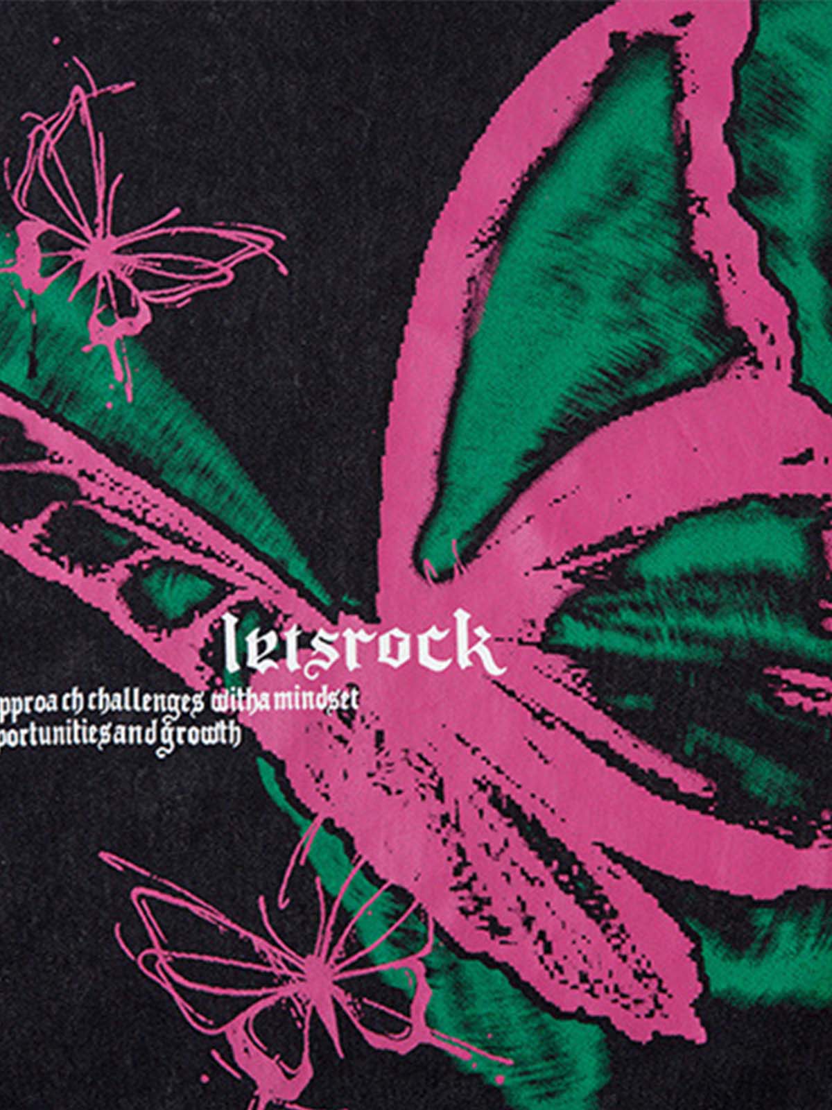 • Design Elements: Vibrant butterfly graphic print, distressed hem with drawstrings