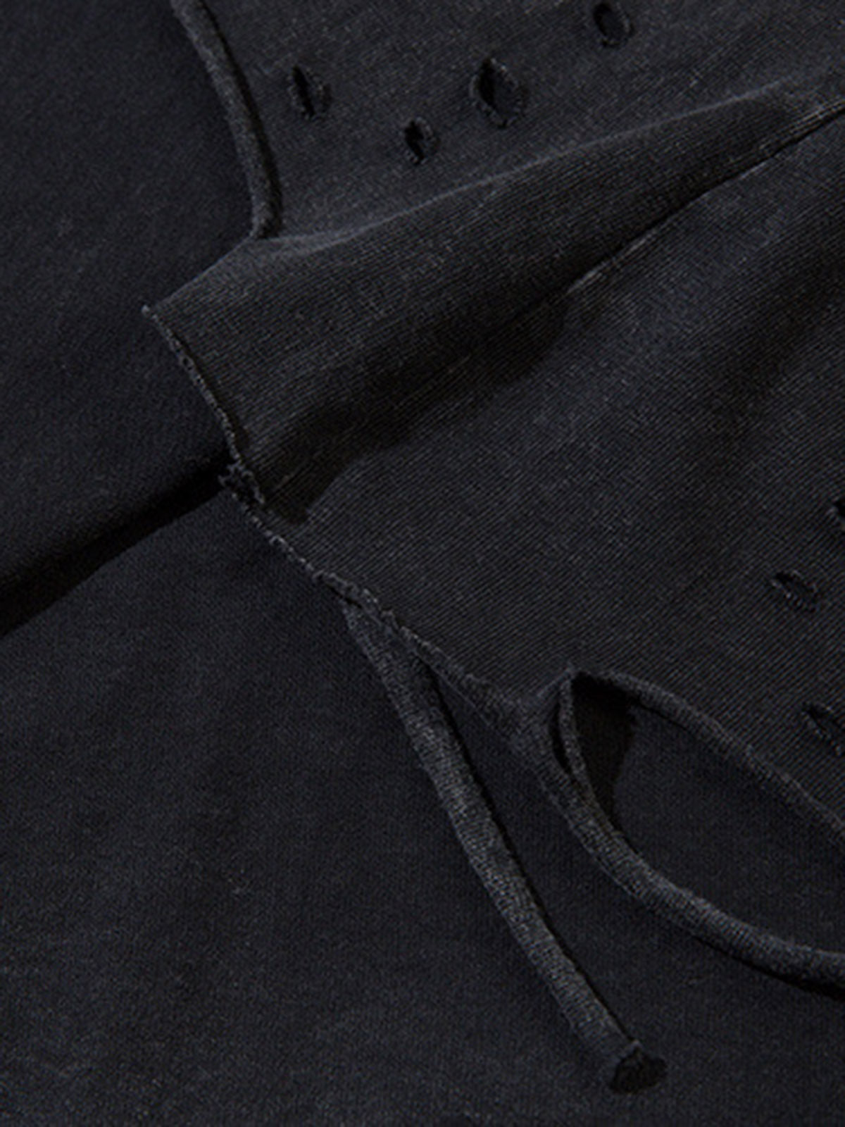• Distressed hem with drawstrings allows for a customizable fit