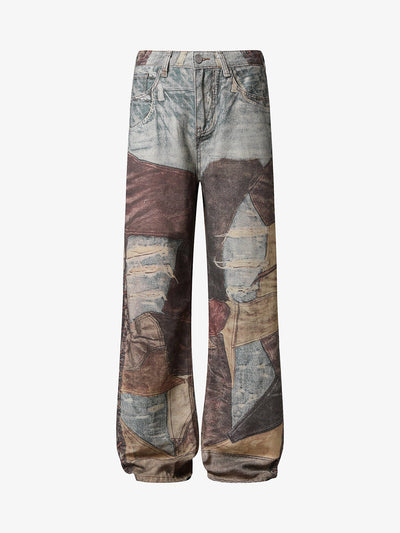 Checkerboard Jacquard Wide Leg Jeans - 2193
