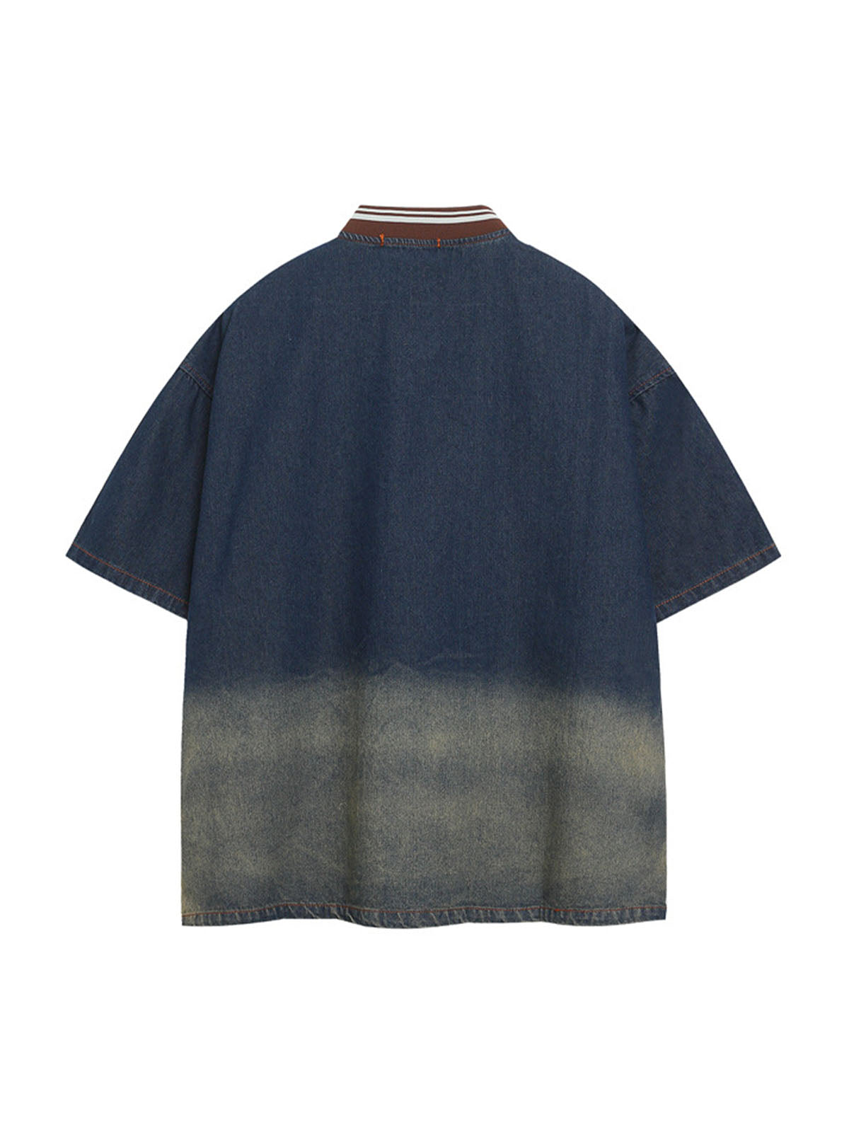 • Design Elements: Embroidered text design, sleeve stripes, gradient color effect