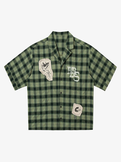 Patchwork Camouflage Ripped Shirt Jorts Denim Suit