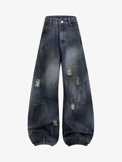 Washed Distressed Raw Edge Baggy Jeans - 2271