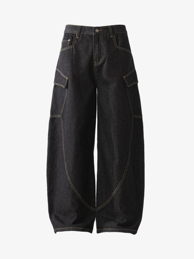 Washed Multi-Pocket Baggy Barrel Cargo Jeans