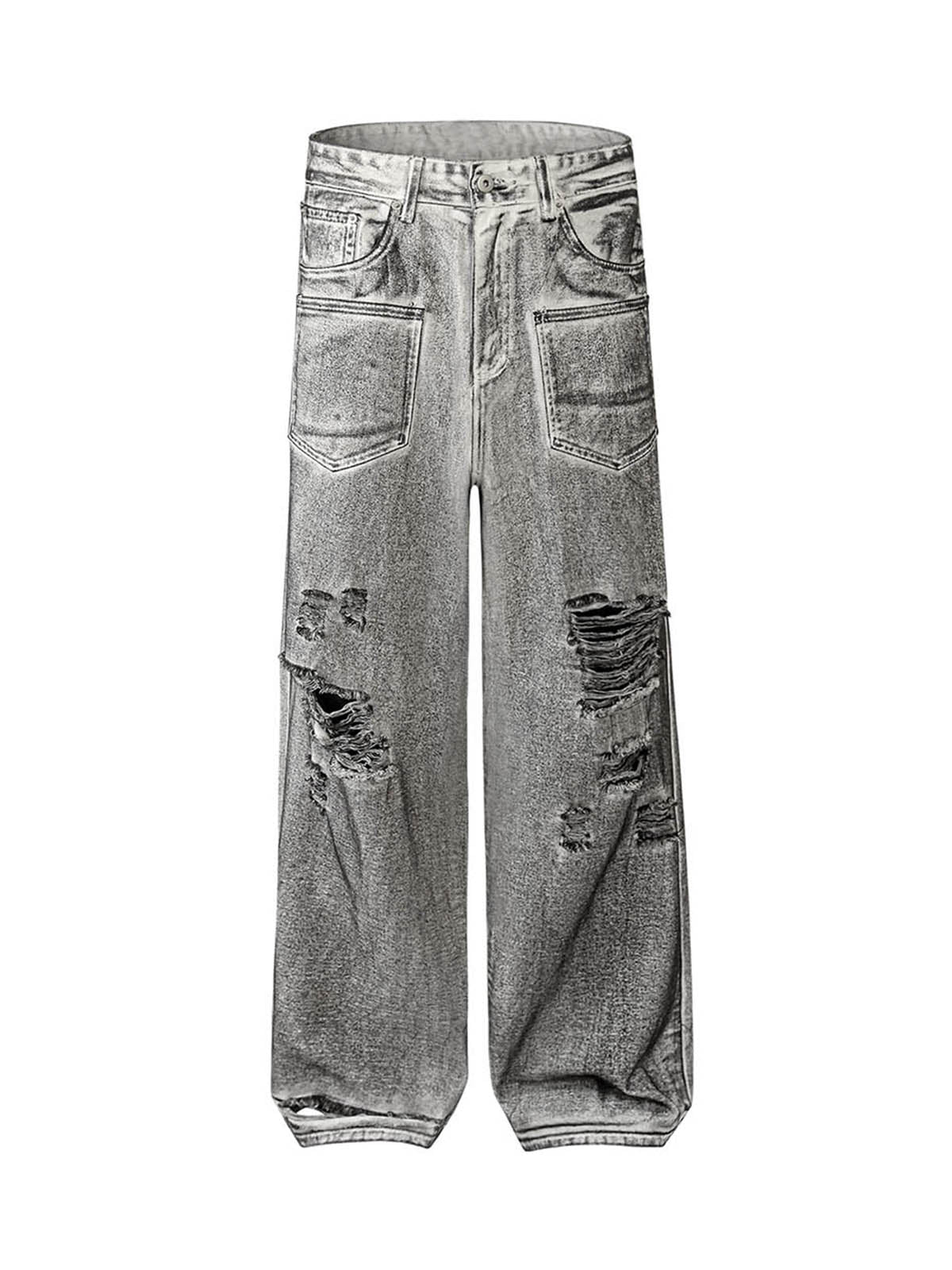 • Detail Features: Distressed Details, Wide Leg, High Waist, Zipper Fly