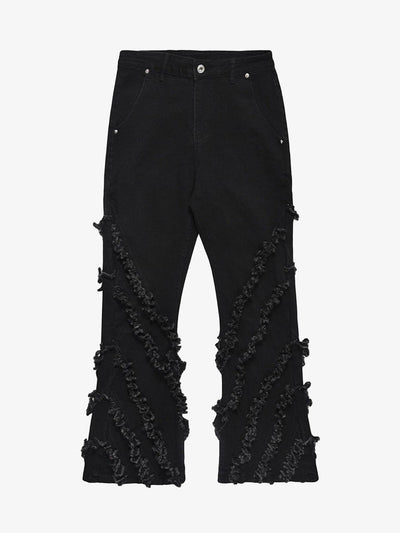 Washed Distressed Deconstructed Split Barrel Jeans - 2359