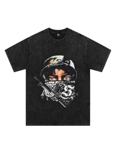Mask Skull West Coast Hip-Hop Print T-shirt