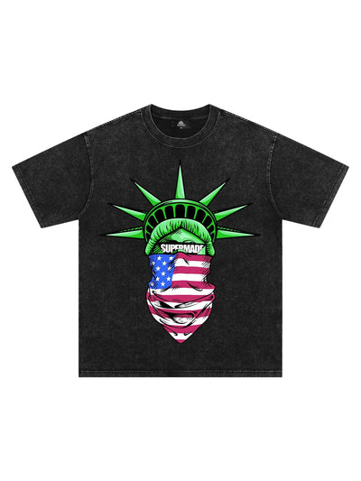 Orginal Statue of Liberty Splicing Graffiti Independence Day T-shir