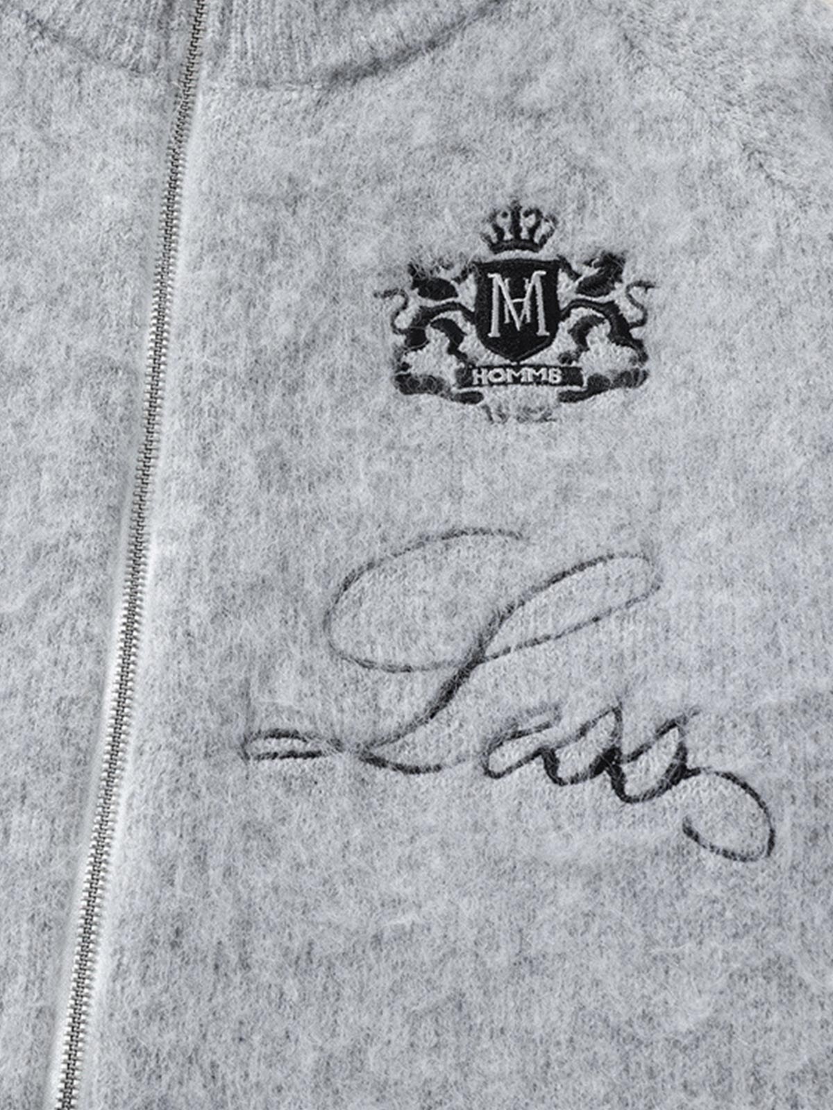 • Design Elements: Embroidered logos on the chest, cursive text design, and white striped sleeves
