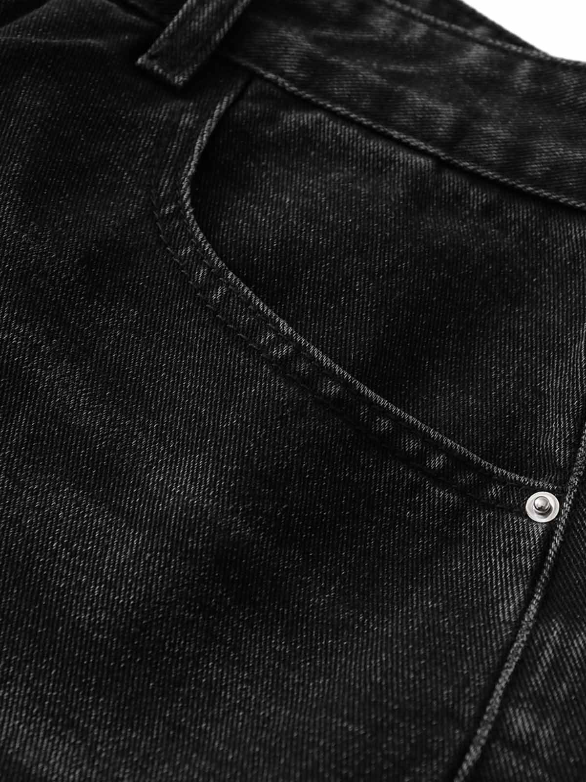 • Design Elements: Distressed details, plaid lining, wide-leg cut