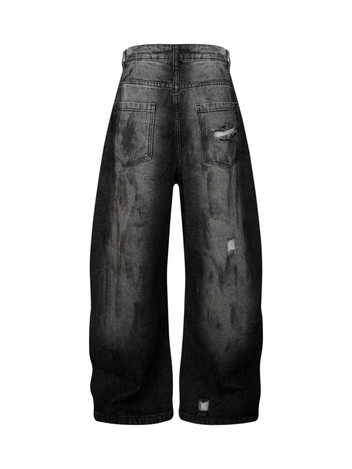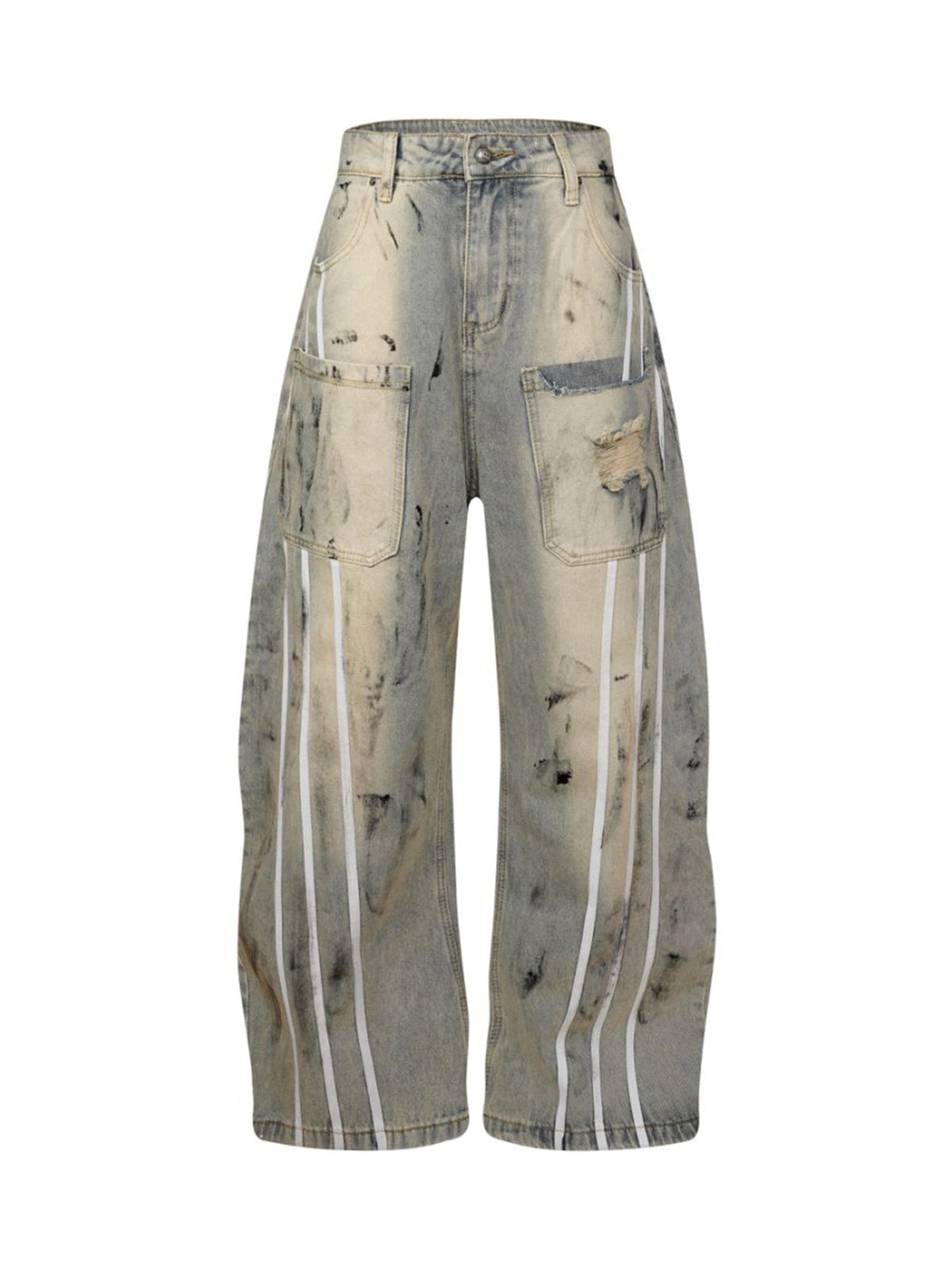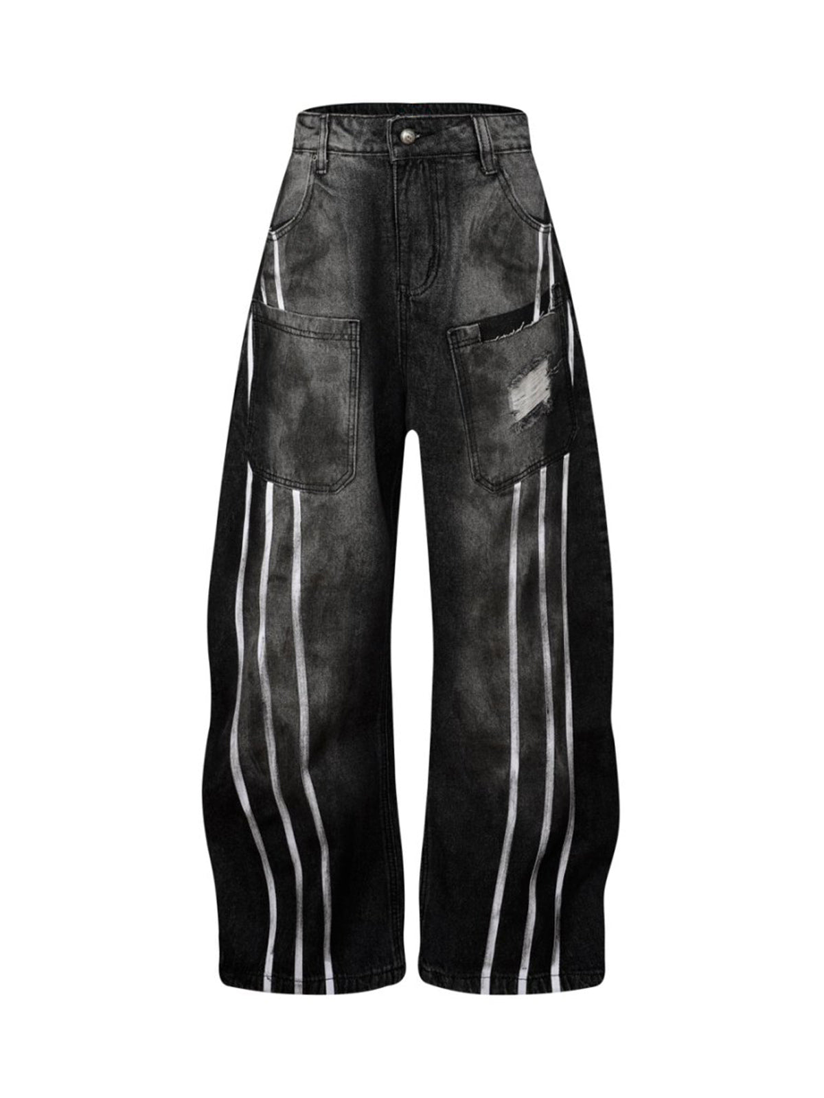• Design Elements: Distressed patches, striped accents, wide-leg silhouette