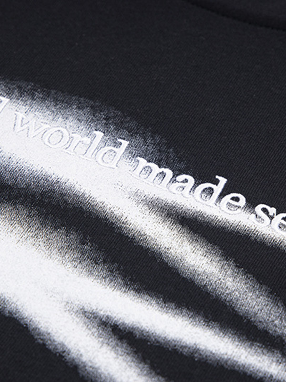 • Design Elements: Large script graphic on the back, minimalist front design, hooded neckline