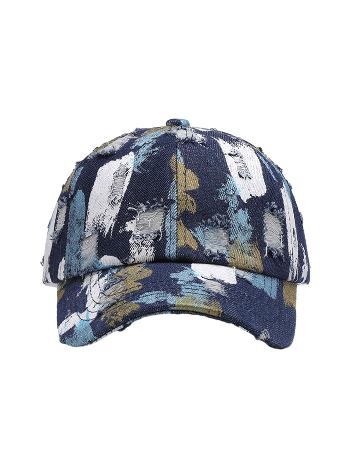 • Design Elements: Unique abstract print, distressed details, adjustable strap closure