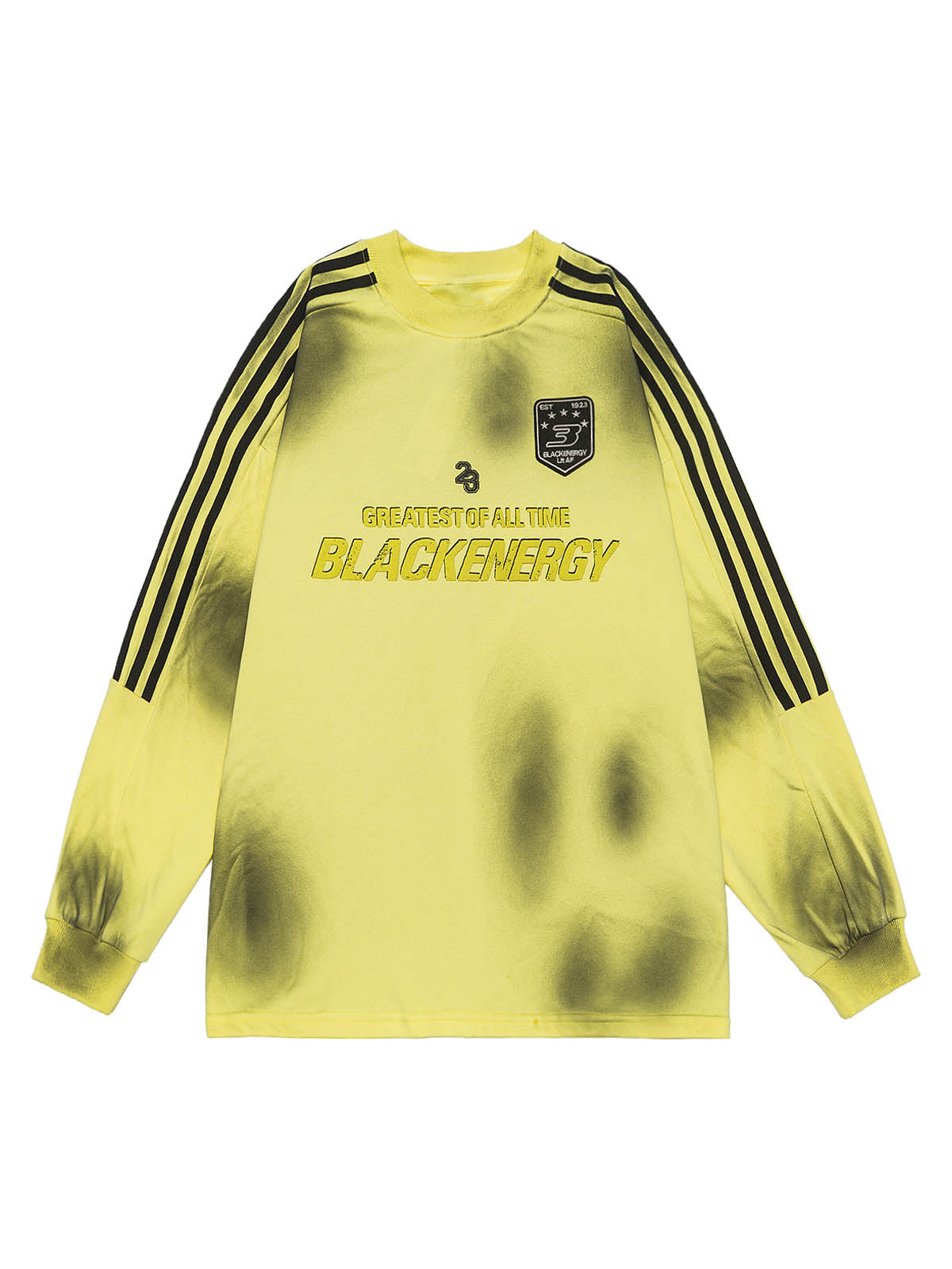 • Detail Features: Crew Neck, Long Sleeves, Graphic Print, Striped Shoulder Details