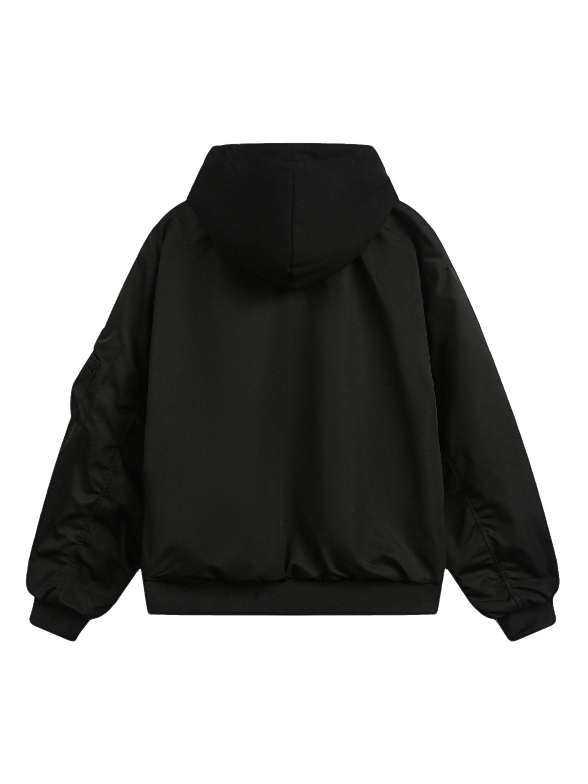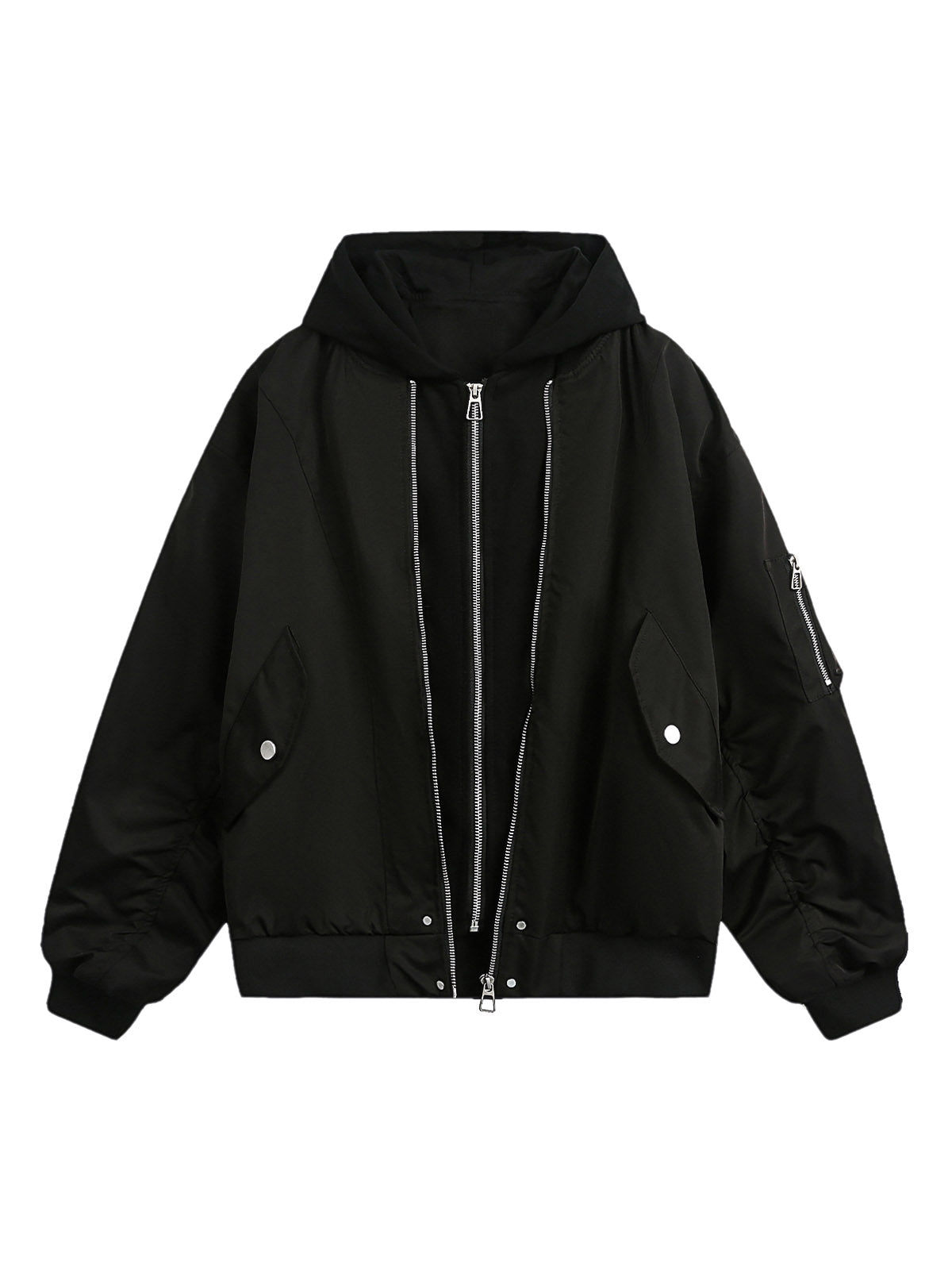 Faux Two-Piece Pleated Spliced Hooded Bomber Jacket